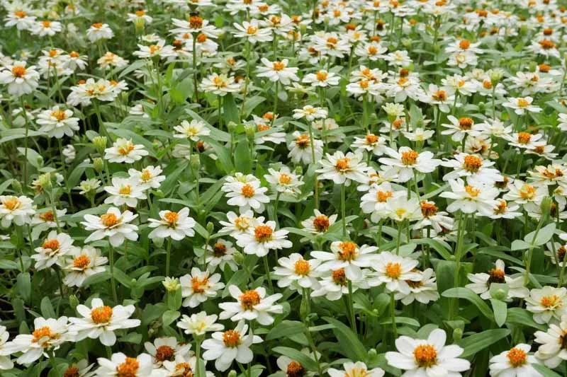 Narrow leaf Zinnia’s will begin flowering later in the summer, but continue into October. Narrow-leafed versions are disease-resistant and won't wilt when the sidewalk radiates heat. They also stay low and bushy unlike typical garden types.