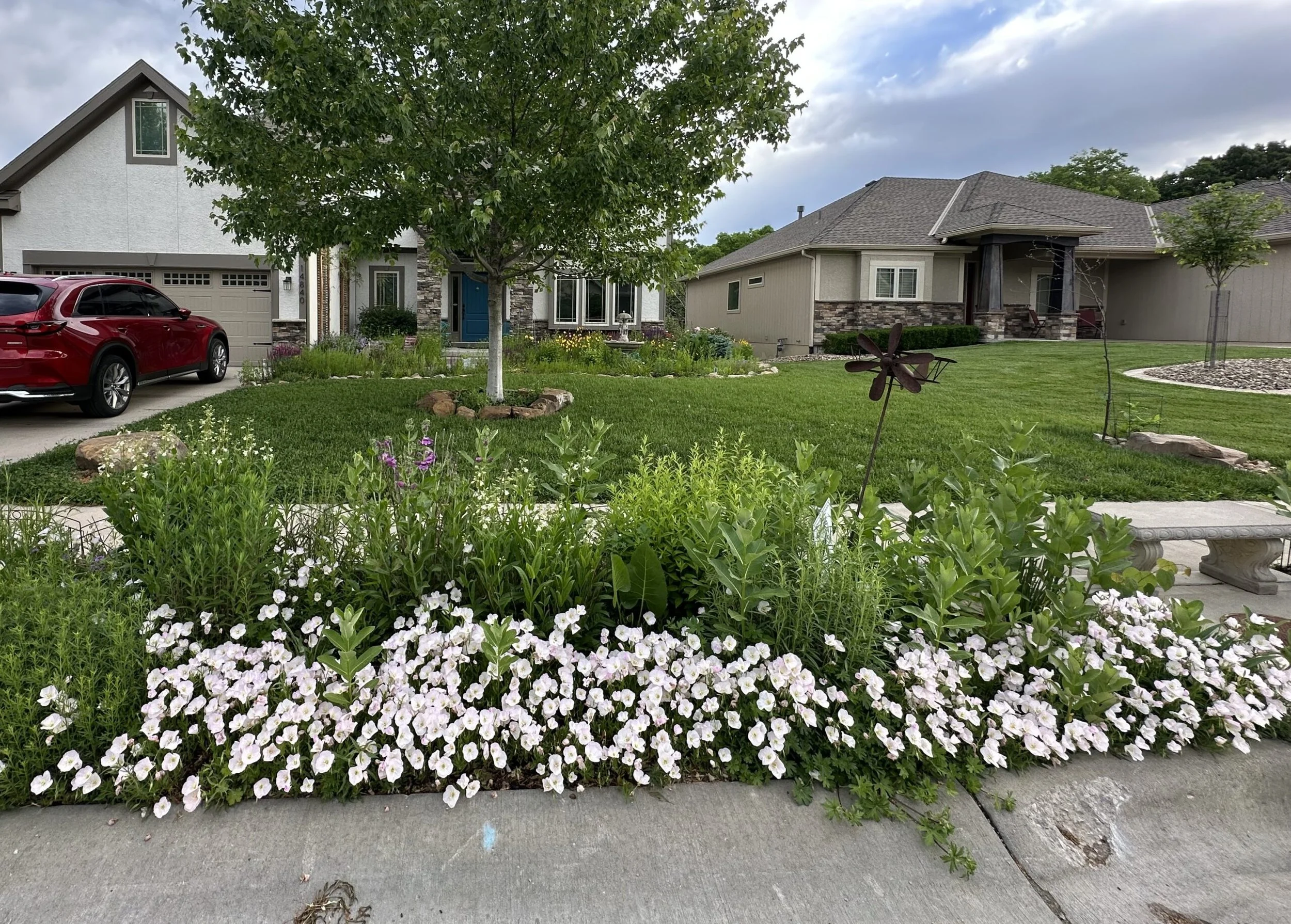 A prairie grass - little bluestem is very well suited to drought like conditions and dry areas. It is a host plant to many butterflies. This plant gives texture and variety to the mix, and adds seasonal interest with bronze color in the fall.